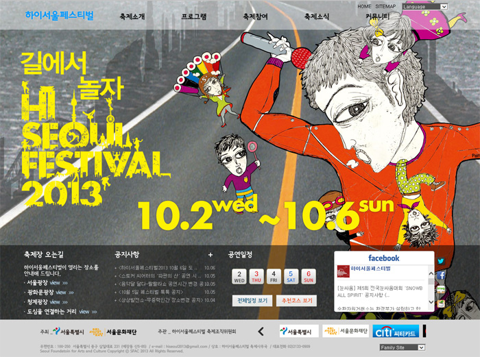 2014 대한민국 가을예술축제는 풍요로운 계절, 가을에 국민들과 관광객들이 계절처럼 풍성한 공연예술을 즐길 수 있도록 다양한 국제공연예술행사들을 연계하여 구성된 대규모 축제입니다. 2000년대을 전후하여 9, 10월이면 우수한 국내외 공연을 선보여 온 서울국제공연예술제(SPAF), 서울세계무용축제(SIDance), 서울아트마켓(PAMS), 대학로거리공연축제(D.FESTA)가 올해 ‘가을예술축제’라는 이름 아래 함께 모였습니다. 연극, 무용, 거리공연 등 함께 해서 더 풍성해진 공연예술행사들을 예술 애호가들뿐 아니라 보다 많은 국민들이 즐길 수 있도록 하는데 ‘가을예술축제’가 탄생한 목적이 있습니다