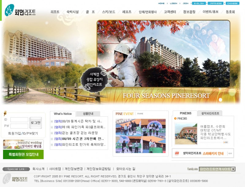 서울에서 가장 가까운 사계절 종합 휴향지 양지파인 리조트 ( www.pineresort.com ) 웹사이트 리뉴얼 작업