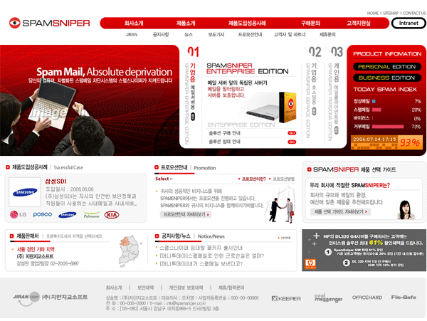 (주)지란지교소프트의 대표제품중 하나인 스팸메일 차단 솔루션-스팸스나이퍼 웹사이트 구축 및 디자인컨설팅의 용역개발 업체로 선정 됐다