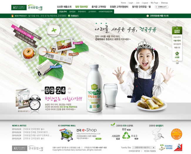기업 | 건국유업 페이지 정보 글쓴이 관리자 작성일2010-03-26 19:51 조회10,417회 댓글0건 이전글 다음글 목록 본문 건국우유와 건국햄 홈페이지 리뉴얼 작업 대학유업중 1위를 하고있는 건국유업의 이미지를 잘 살리고 신제품등의 소개와 커뮤니티를 중점으로 컨셉을 잡았습니다. 이전글 다음글 목록