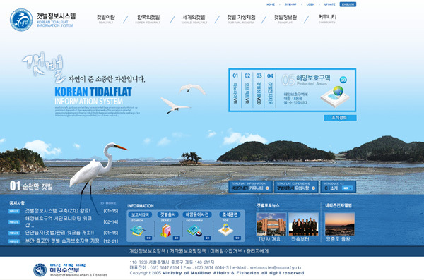 공공 | 공공기관,갯벌생태시스템,홍보,교육용 페이지 정보 글쓴이 정혜임 작성일2006-06-13 19:48 조회9,900회 댓글0건 이전글 다음글 목록 본문 해양수산부에서 추진하는 주요 사업중에 하나인 갯벌사업 우리나라 갯벌에 대한 가장 방대하고 정확한 연구자료를 토대로 일반인들에게 중요성을 홍보하는 사이트 이전글 다음글 목록