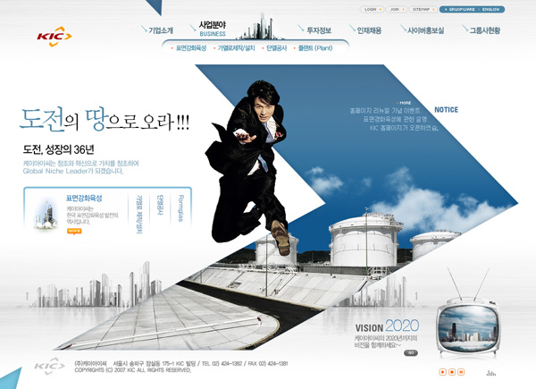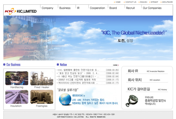 기업 | (주)케이아이씨 페이지 정보 글쓴이 관리자 작성일2008-09-08 19:40 조회10,881회 댓글0건 이전글 다음글 검색 목록 본문 (주)케이아이씨 그룹이 글로벌 기업으로 성장하면서 리뉴얼 작업 및 아이덴티티 구축을 하게 되었다. 이번에 개편될 웹사이트는 글로벌 니치기업 이미지로 변환하는 중요한 시점이다. 이전글 다음글 검색 목록