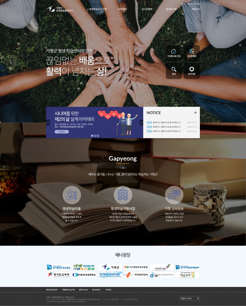 공공 | 가평평생교육원 홈페이지 구축 페이지 정보 글쓴이 최고관리자 작성일2019-06-05 13:07 조회8,164회 댓글0건 이전글 다음글 목록 본문 가평 평생학습센터 홈페이지 재구축을 진행합니다. 이전글 다음글 목록